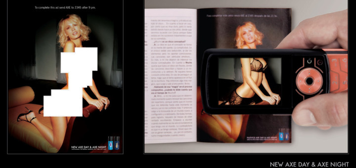 Lo que ves acá es a) una rubia semidesnuda en ropa interior transparente, b) un gran aviso del nuevo Axe Day and Night, c) el mejor uso de la tecnología SMS hasta el momento,...